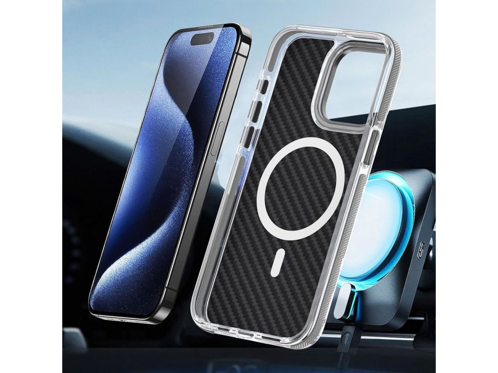 Carbon fiber magsafe kryt pro Apple iPhone 17 Pro Max, šedý
