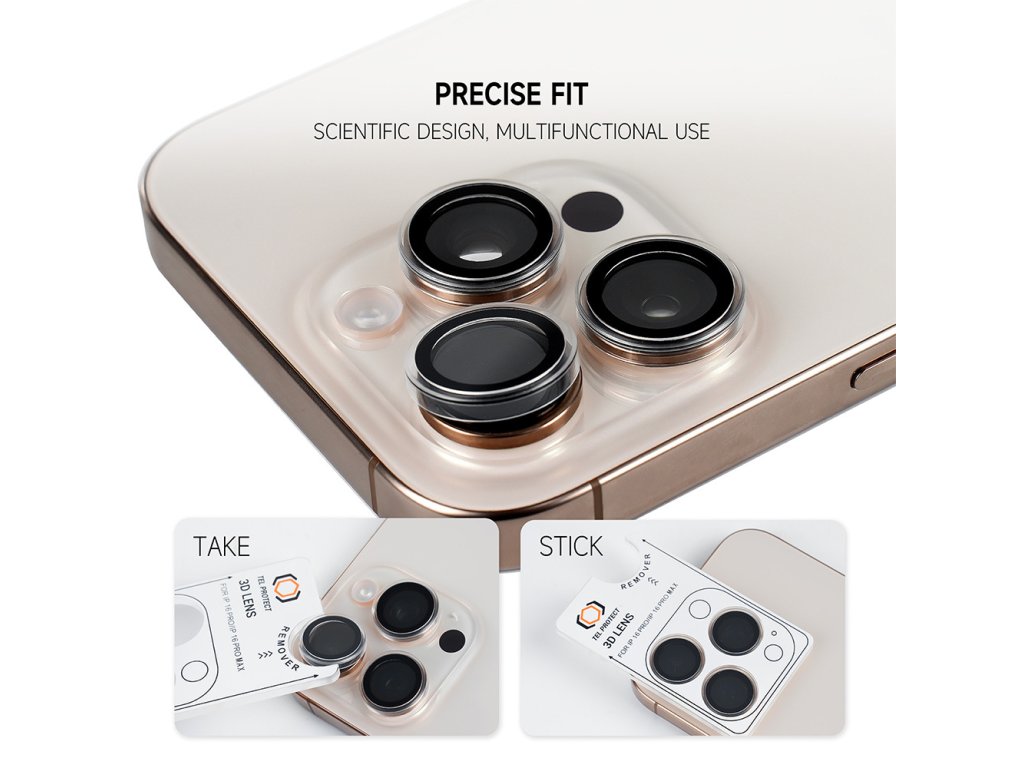 Ochranná sklíčka pro čočky fotoaparátu Tel Protect 3D s aplikátorem, iPhone 15 Pro/15 Pro Max, černá