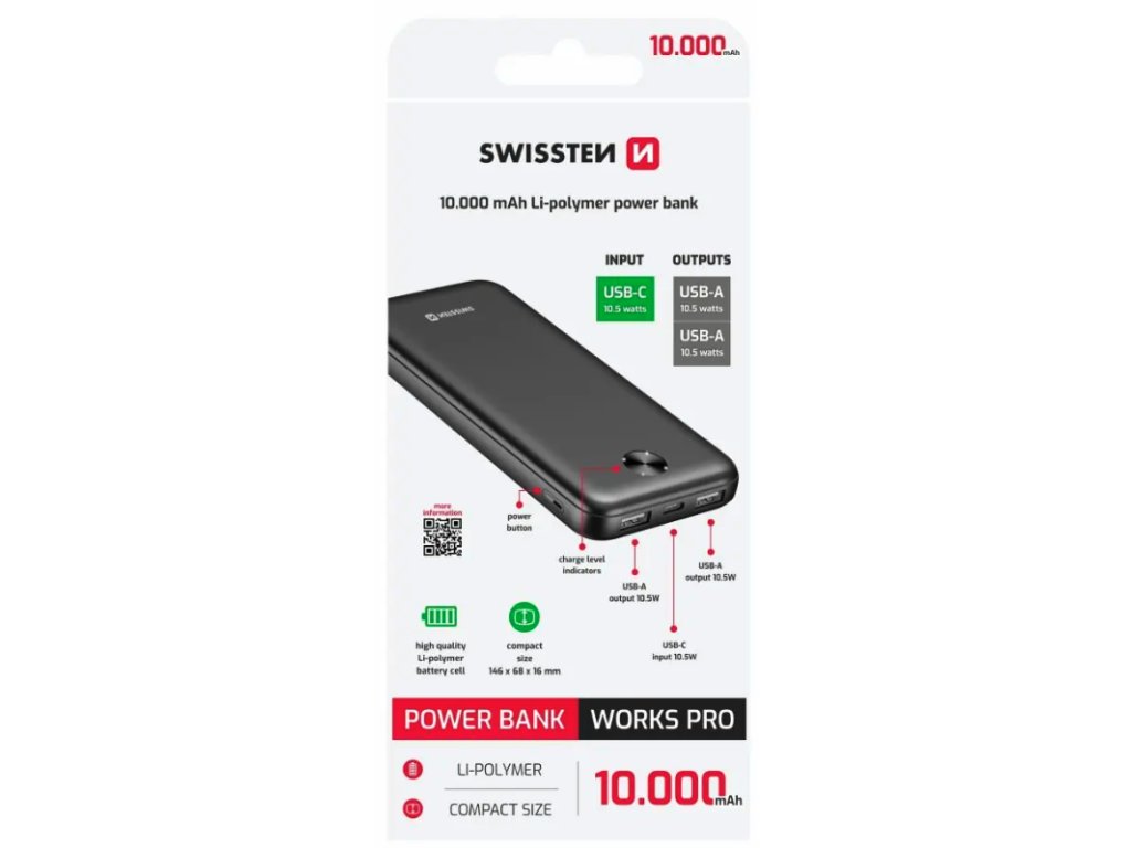 Swissten Power Bank Worx Pro 10000 mAh black